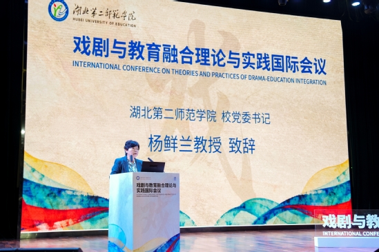 杨鲜兰在致辞中介绍了我校戏剧教育在大中小学一体化美育研究与实践、师范人才培养、跨学科整合、课程体系与教材建设、社会服务等方面取得的成效。她表示,学校将持续探索戏剧与教育交叉融合的创新路径,期望此次会议既能搭建交流互鉴的平台、成为展示中国戏剧教育成果的窗口,也能为国内高校汲取国际前沿经验、借鉴海内外高校美育育人实践模式提供助力,共同推动戏剧教育融入高校人才培养各环节。