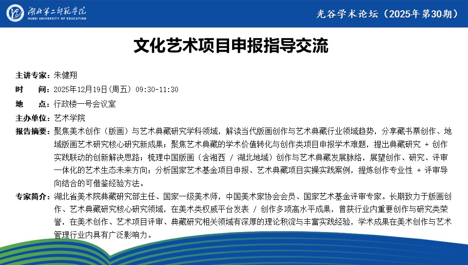 【光谷学术论坛预告】文化艺术项目申报指导交流-ag捕鱼王官方网站