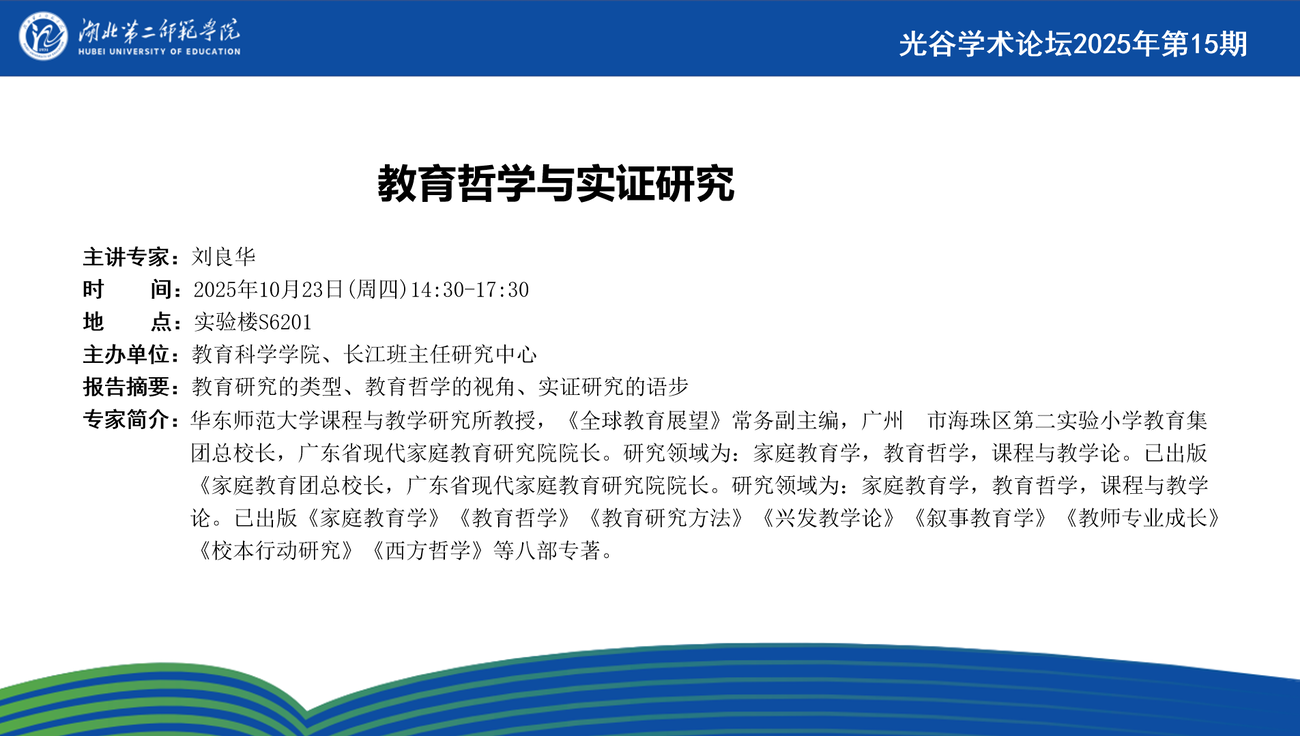 【光谷学术论坛预告】教育哲学与实证研究-ag捕鱼王官方网站