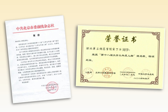 宋丁沣同学获第十八届“大学生年度人物”提名奖-ag捕鱼王官方网站